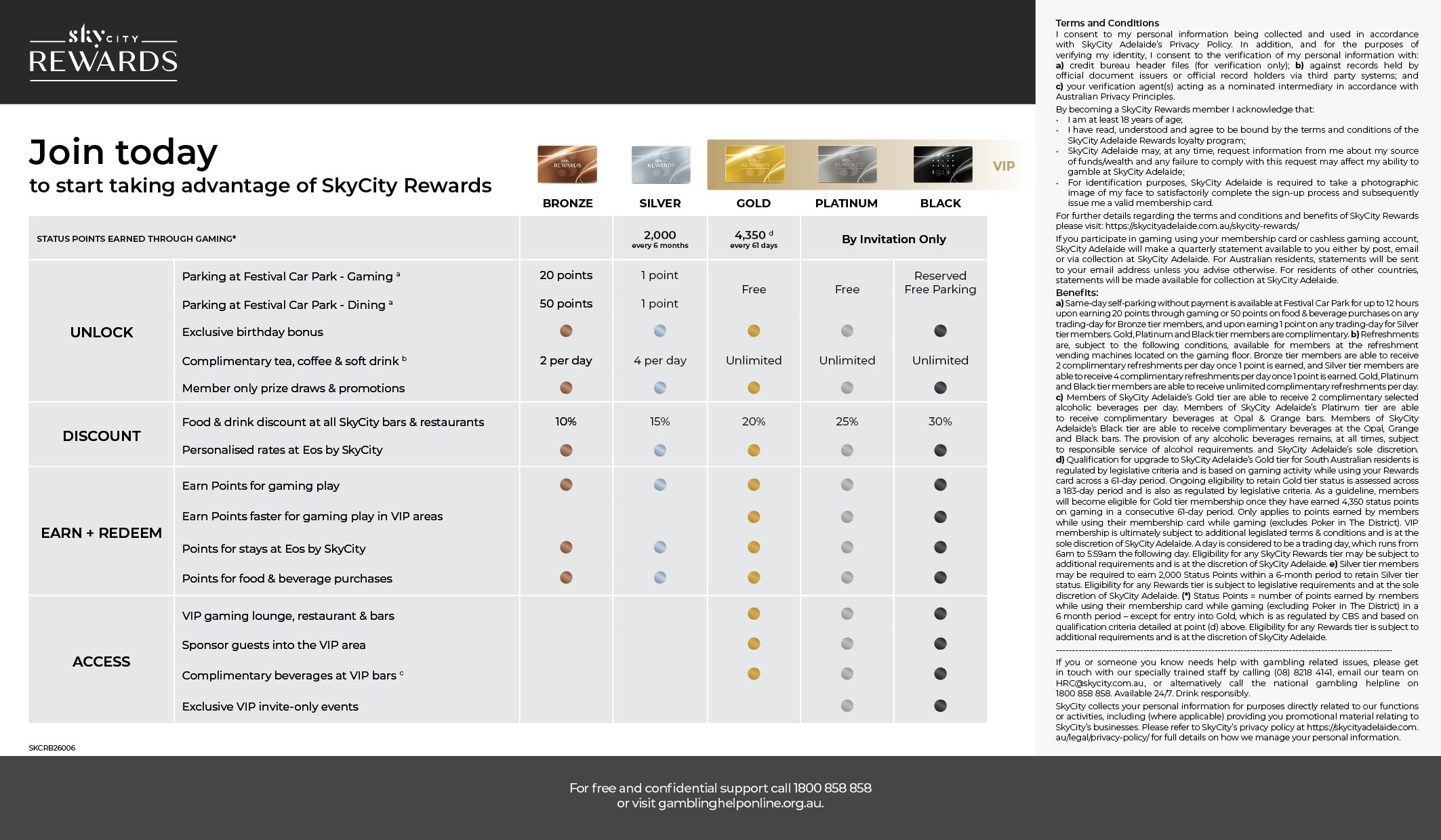 *Turnover on table games, and therefore points earned, is estimated based on estimated average bet, estimated length of play and estimated number of hands played. The determination of SkyCity Adelaide shall be final.